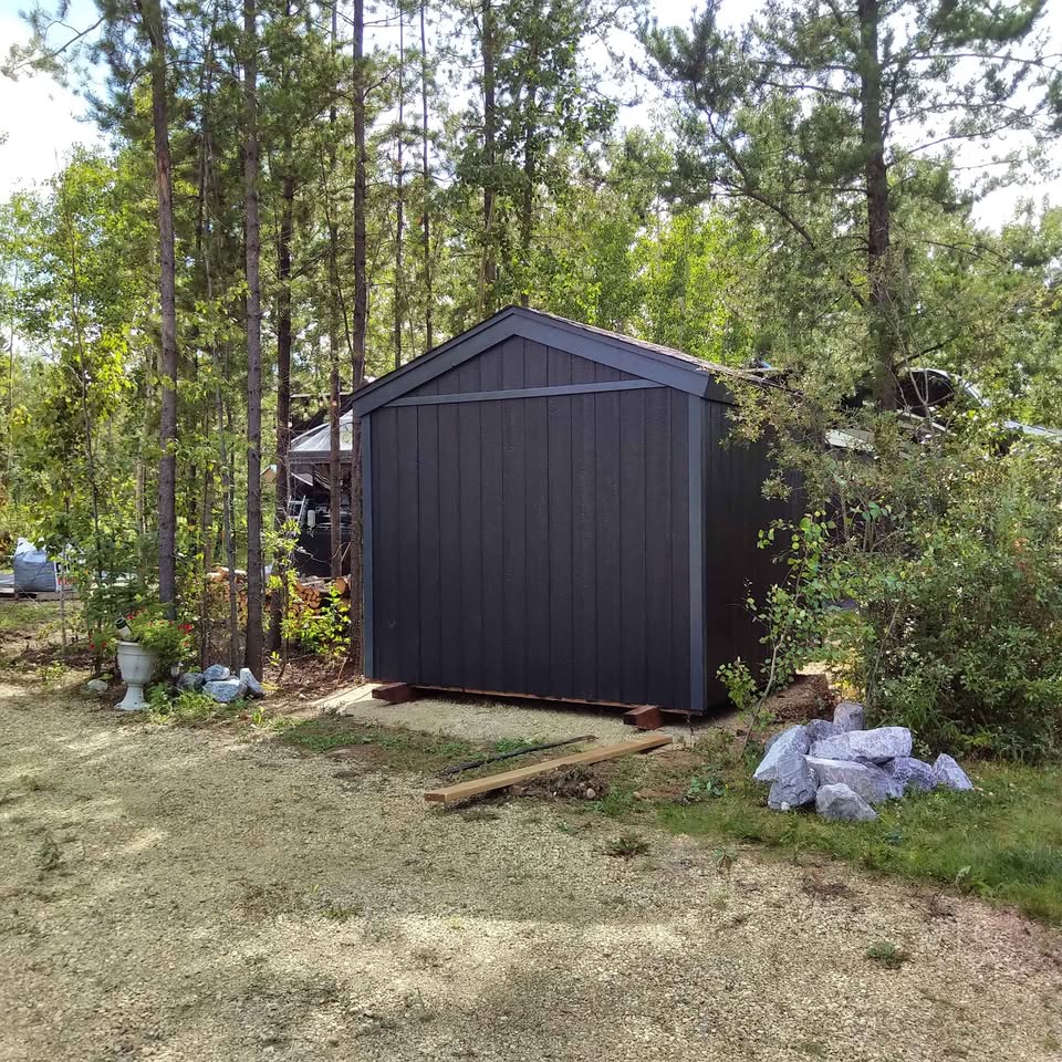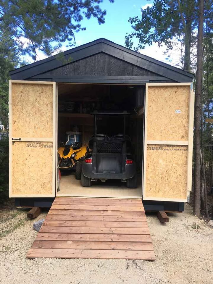Our Storage Sheds are a great place to store all your backyard tools, bikes and whatever you may have. They also can become great workshop. Each shed is built on pressure-treated skids, 2×4 walls 16” o/c, 2×4 rafters 16” o/c, smart board siding and trim, metal roof, double wide shed door, includes ramp 5×5 and rain drip flashing.